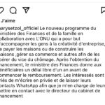 « Les intéressés sont priés de m’écrire en privée et de laisser leurs contacts Whatsapp afin que je m’en charge de leurs mettre en contact avec le directeur du cabinet de financement ».