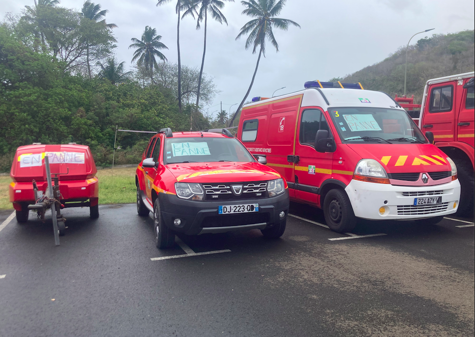 Situation plutôt cocasse que celle de mardi 19 avril. Les pompiers ont exposé depuis une semaine maintenant les véhicules en panne profitant du passage de plusieurs gradés  sans doute pour tirer la sonnette d’alarme à la hiérarchie. Sollicités, certains pompiers n’ont pas voulu s’exprimer.  A cause de la grève dans leurs rangs, les pompiers sont en mode dégradé et des commandes ne sont pas passées, du retard est constaté dans les réparations. Un camion et un pick-up sont voués à être réformés. Une moto-pompe est en panne mais il en existe une deuxième rapatriée à Marie-Galante depuis l’incendie de pneus à Folle-Anse. La situation de Marie-Galante est particulière puisqu’il n’y a pas d’atelier départemental à disposition. Toutefois, font remarquer les gradés, « par rapport à des casernes  d’égale importance, Marie-Galante se retrouve plus dotée. Certains matériels ont été doublés. Il y a notamment trois ambulances alors qu’un centre de cette catégorie sur le continent n’en a qu’une », rappelle le Lt Patrick Leroux qui confie ne pas comprendre l’attitude de ceux qui ont mis les véhicules à cet endroit. Heureusement, le centre fonctionne en autonomie pour certaines réparations grâce à la bonne volonté du personnel. «On a la chance d’avoir un collègue mécanicien. M. Lancelot qui est disponible H24, si on l’appelle à minuit 1h du matin, s’il y a un problème sur un véhicule et qu’il faut absolument ce véhicule, il va venir », souligne le commandement. Marie-Galante s’autonomise et se débrouille en clair. On se souvient de l’épisode du sauvetage du miraculé de la passe des Basses   fin 2020, durant lequel les pompiers n’avaient pas pu intervenir à proprement parler puisqu’ils ne disposaient pas de canot de sauvetage. Actuellement, un canot est en place mais il manque le pick-up pour le tracter. Il est à réformer et la caserne est en attente d’un nouveau matériel.