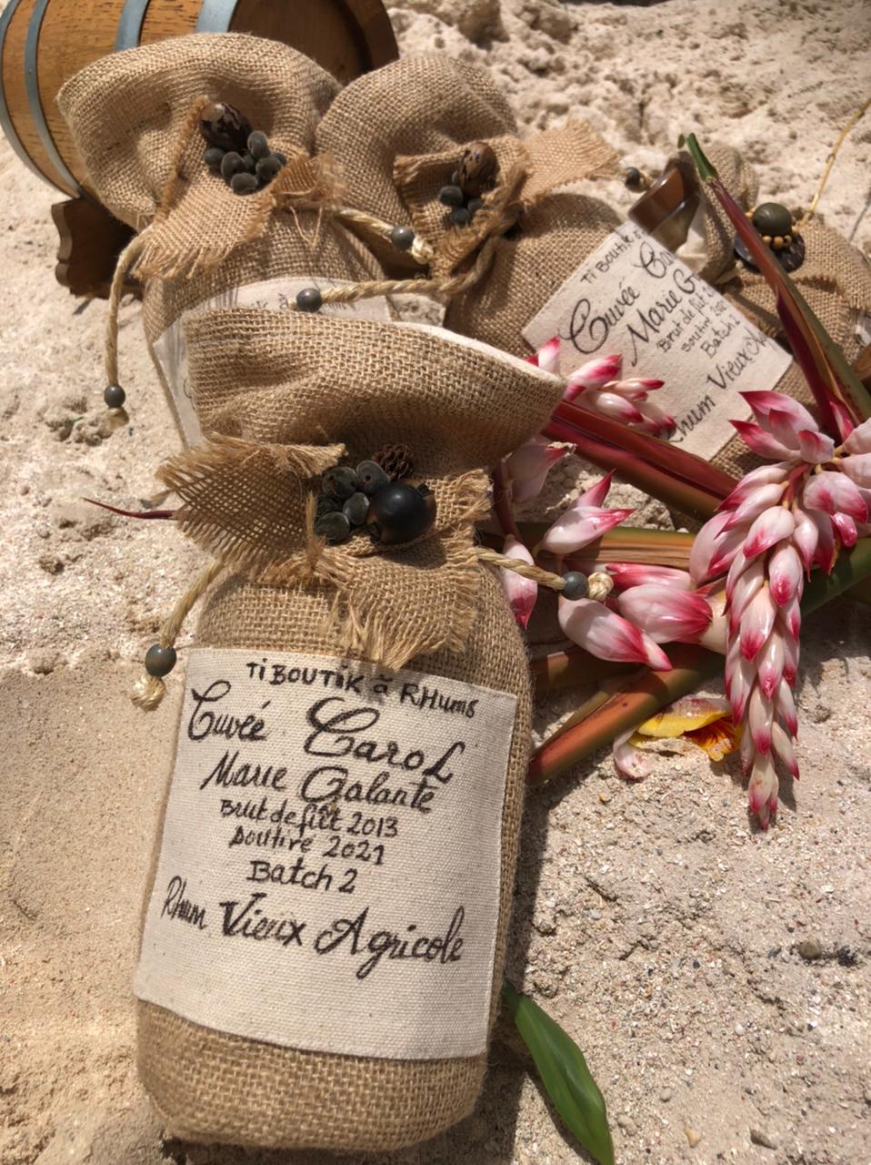 C’est « la Cuvée Carol ». Ça sonne bien et ça fonctionne…Carol Samson, ancienne commerciale de Bielle s’est lancée depuis quelques mois dans les bouteilles d’exception en cuvée spéciale à son nom ou plutôt son prénom. En gros, Carol achète des bruts de fût à son ancien employeur, Bielle, et reconditionne puis commercialise à travers son entreprise « Ti Boutik à rhums » (la boutique spécialisée dans les spiritueux située au port de Grand-Bourg) sous l’appellation « Carol ». Sa première cuvée est sortie le 21 mai dernier. Partie en trois jours avec ses 252 bouteilles.