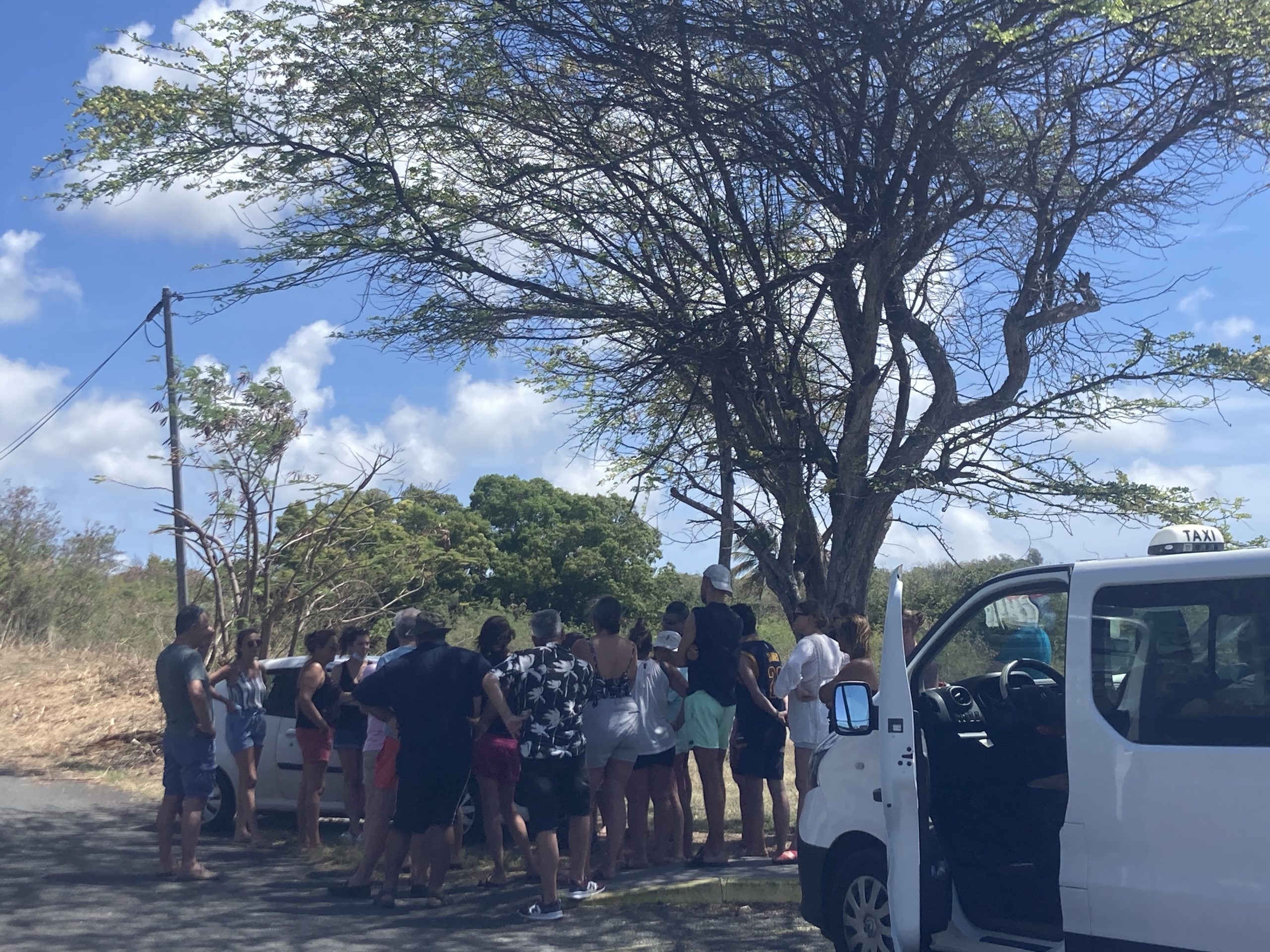 Mardi 29 mars. Tels des persona non grata, restés en contrebas, à la porte d’un château inaccessible, les touristes descendent de voiture, se postent où ils peuvent et grattent un peu d’histoire grâce à leurs guides respectifs. Le Château, ils ne le verront qu’à travers le grillage. Il est 10h 15 et en à peine dix minutes, déjà 5 minibus se sont garés à la queue-leu-leu sur un emplacement en face de l’entrée. Un transporteur commente : « Ah là, c’est rien. Vous n’avez même pas vu les gros bus arriver». Elie Goram, commence son intervention. Il se met à l’ombre d’un arbre pour dispenser à une vingtaine de touristes son speech sur le monument. « Depuis 1814, cette habitation appartenait à Dominique Murat, originaire du Cap-Breton dans les Landes, il était notaire. Il s’est installé en prenant 200 hectares de terre… ». Puis il enchaîne en parlant des esclaves, de la construction de la première puis de la deuxième sucrerie. Encore quelques minutes à dispenser ce texte de présentation et puis hop, en voiture, ce sera tout. Beaucoup restent sur leur faim… de page d’histoire qu’ils n’ont pu qu’entrevoir. Un petit groupe de touristes mené par un collègue prend sur le côté et longe la barrière tels des resquilleurs punis. Ils veulent en apercevoir le maximum de ce château qu’ils ne visiteront sans doute jamais tout comme des centaines qui y sont passés ces derniers mois. Pour Gérald Salomon, un autre guide, arrivé un peu plus tôt, c’est proprement inacceptable. D’ailleurs, dans son van, des touristes n’hésitent pas à réagir en voyant le micro. «En tant que Français, on est complètement scandalisés. La culture doit vivre. Et à un moment donné, il faut passer à autre chose ». Gérald, leur guide, dénonce « des fonctionnaires payés 40% de plus à ne pas travailler depuis des mois ». Il ne restera pas sur place. Il ne fait que passer.