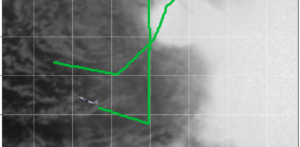 Toujours sur Tropical Tidbits, vous avez aussi les données des missions de reconnaissance.  On n’a rien compris aux données mais ce qui est intéressant c’est de se dire que pendant qu’on tergiverse, à savoir si on va à l’école, si on va au travail, comment on s’organise, s’il y a des bateaux ou autres, le métier de certaines personnes c’est d’aller faire des vols de reconnaissance dans une masse organisée de vents, de pression atmosphérique, de pluies, de charges électriques. Bonjour l’assurance professionnelle. La trajectoire du premier avion de reconnaissance envoyé jeudi est à retrouver juste en-dessous. Non ce n’est pas un jeu vidéo!