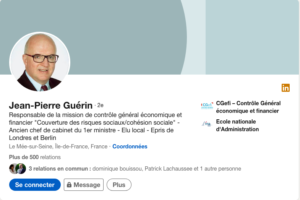 et c’est un peu le Mr Chiffre des trois car il est en poste au Contrôle général économique et financier CGEFI. Le lien vers son profil Linked IN
