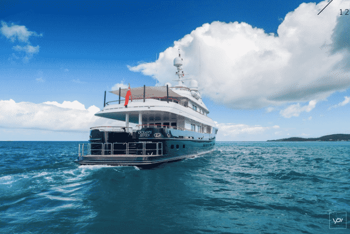 Selon le site de YPI (Yachting Partners International), le courtier en bateaux basé à Monaco qui le commercialise, en été, on retrouve le Ocean’s Seven en Polynésie Française et l’hiver dans la Caraïbe. À en croire le programme des destinations de YPI dans la Caraïbe, leurs yachts sont plus habitués, dans les Iles sous le vent, à croiser à Antigua, Montserrat, Saint-Martin, St-Barth, ou encore Anguilla. D’où le fait de signaler cet intérêt porté à Marie-Galante et également à la Guadeloupe continentale puisque samedi midi, le yacht au tirant d’eau de 3 mètres, a changé de position pour se retrouver au large du Gosier. Peut-être sera-t-il de retour bientôt à Saint-Louis.