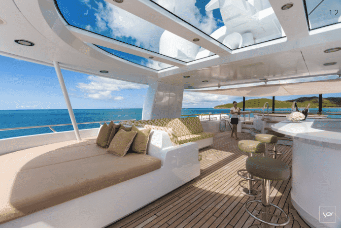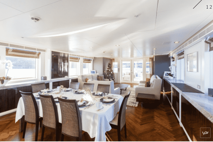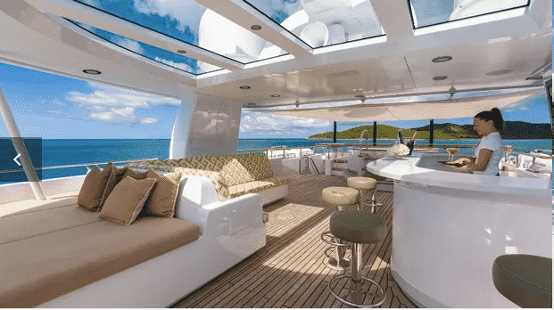 Il faut compter entre 105 000 et 130 000 euros la semaine selon la saison pour pouvoir profiter du Ocean’s Seven. 10 personnes peuvent y dormir car il compte 5 cabines dont deux suites VIP.